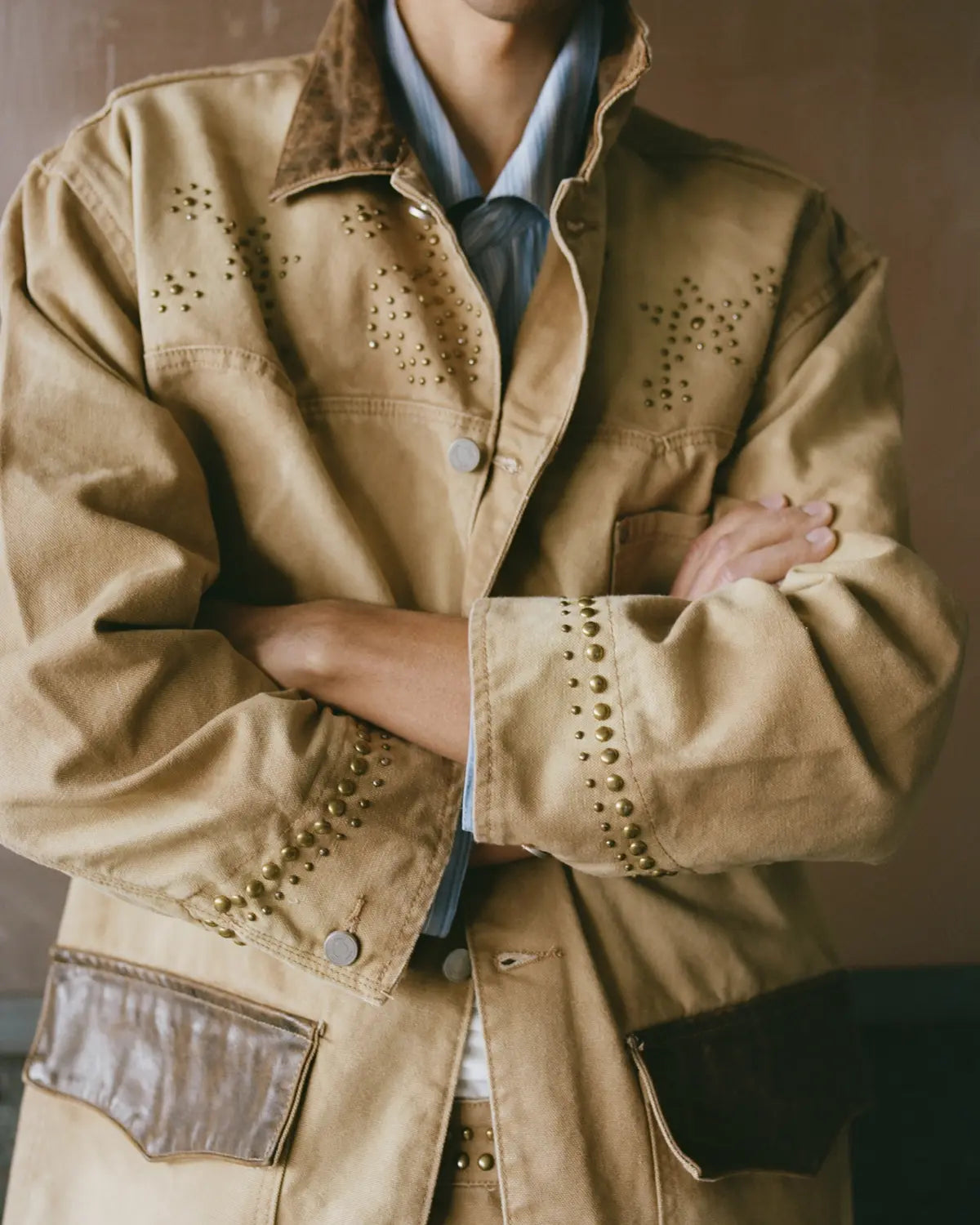 Discover Our Celebrated Genuine Leather Jackets with Hand Distressing, Work Jackets Adorned with Global Motifs, and Patchwork Jackets Showcasing Intricate Designs, Detailed Embroidery, Unique Embellishments, and Bold Prints.