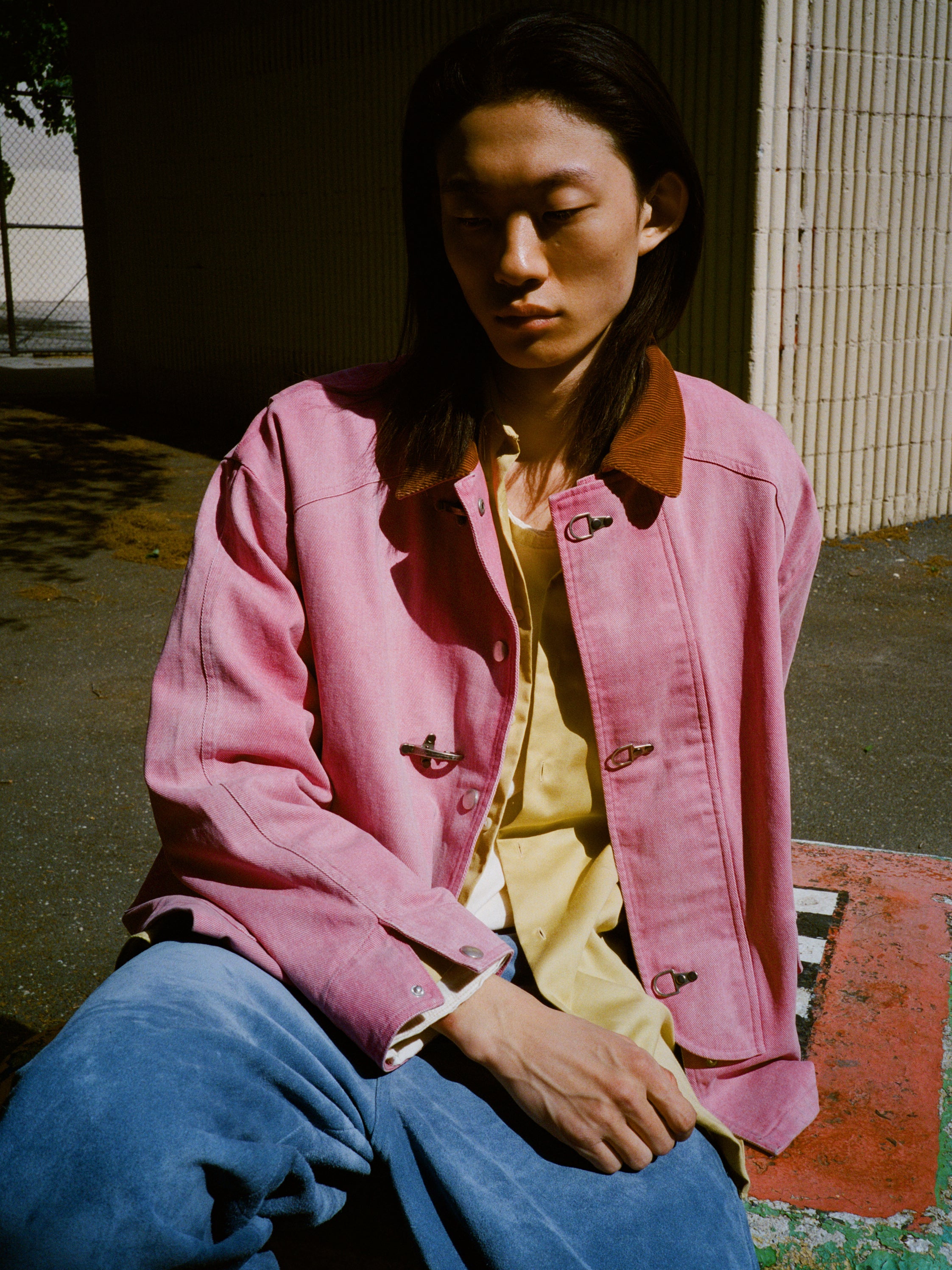 This collection explores the subtle tension between saturation and wear, playful color meets a softened, lived-in fabrics. Each piece is crafted to feel familiar, shaped by texture and tonality. Designed for ease and everyday utility, the garments form a relaxed uniform that evolves with the wearer over time.