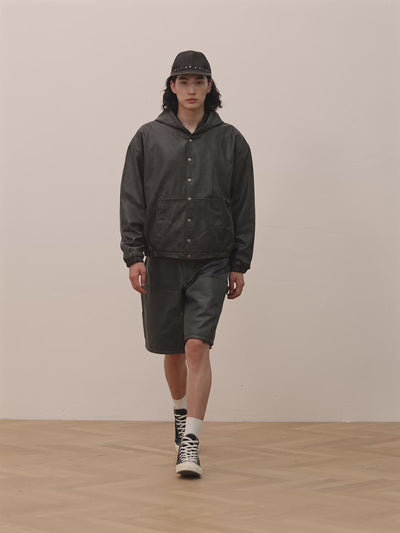 Distressed Genuine Leather Carpenter Shorts