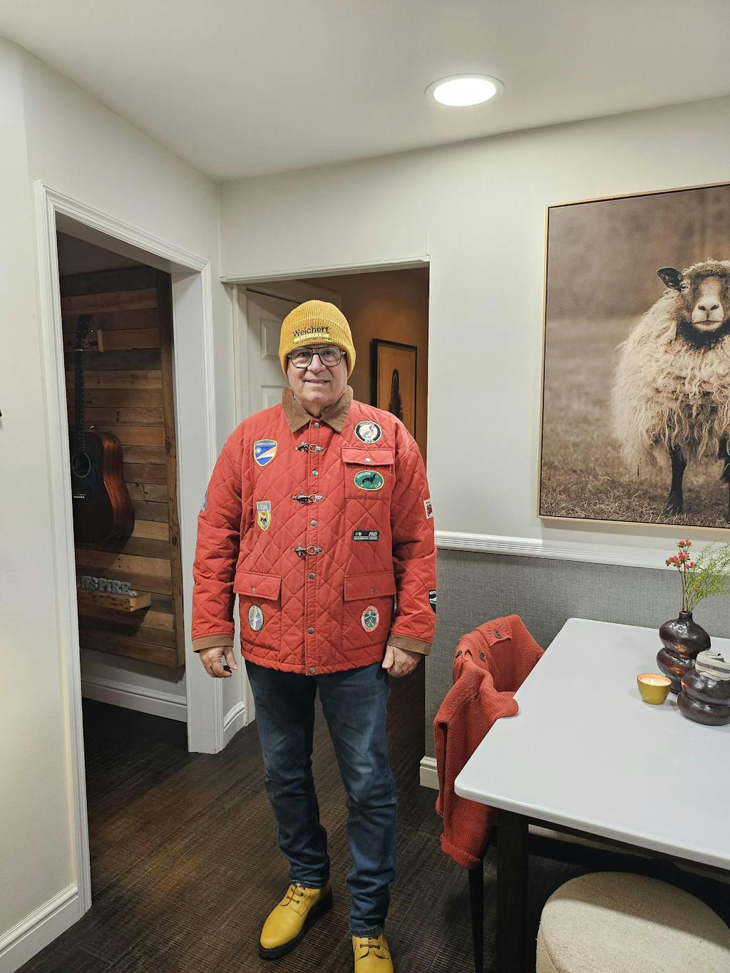Our Farmstead Quilt Patch Jacket is inspired by vintage hunting competition jackets with patches representing farm stands and agricultural alliances on the Northeast Coast. Fitted with heavyweight antique silver fireman clasps, a contrasting brown corduroy collar, and lightly padded cotton to add warmth.