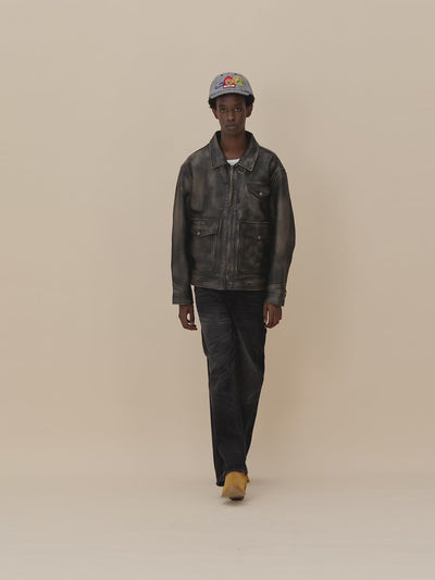 Our Distressed Leather Pocket Jacket features a distressed genuine cowhide leather treatment, meticulously performed by hand in Pakistan, where some of the world's greatest leather is manufactured, to create an antique and aged feel.