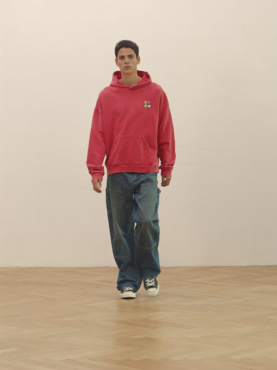 The Multi Patch Hoodie features a sun-faded wash with vintage-inspired appliqués, pins and embroidery. Made from 100% Cotton, it has an oversized fit, ribbed cuffs, and a kangaroo pocket. The distressed detailing enhances its well-loved, timeworn aesthetic.